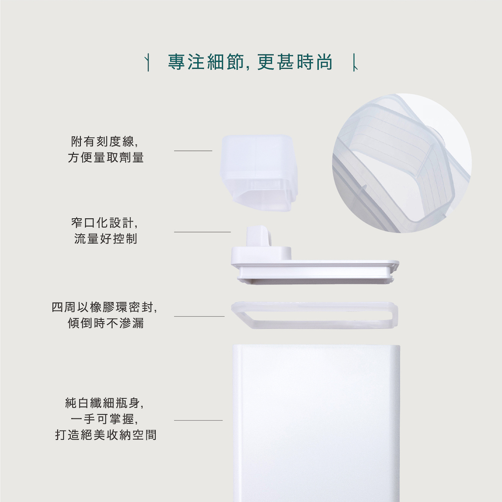 ●瓶蓋帶有刻度線,劑量好抓取