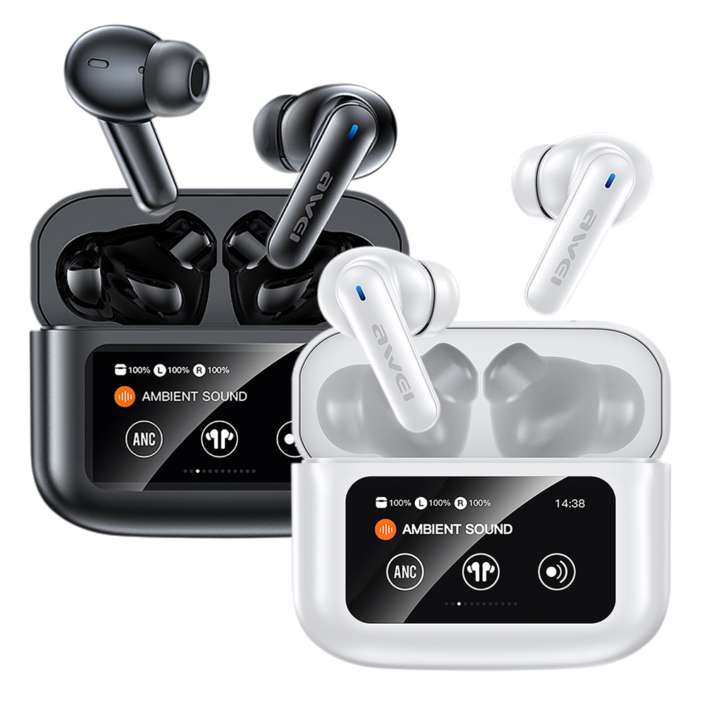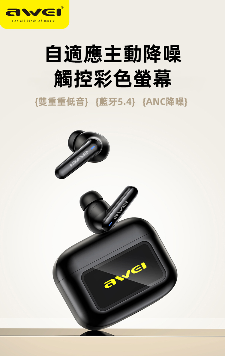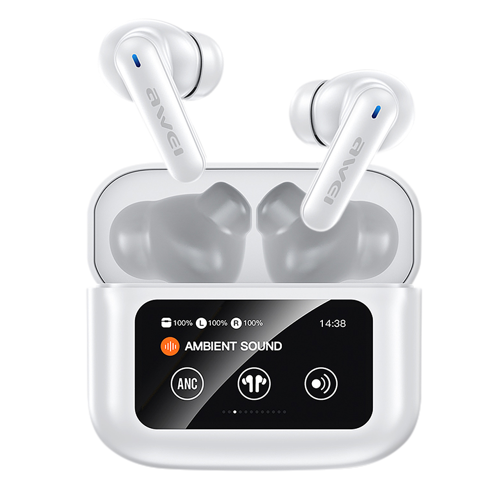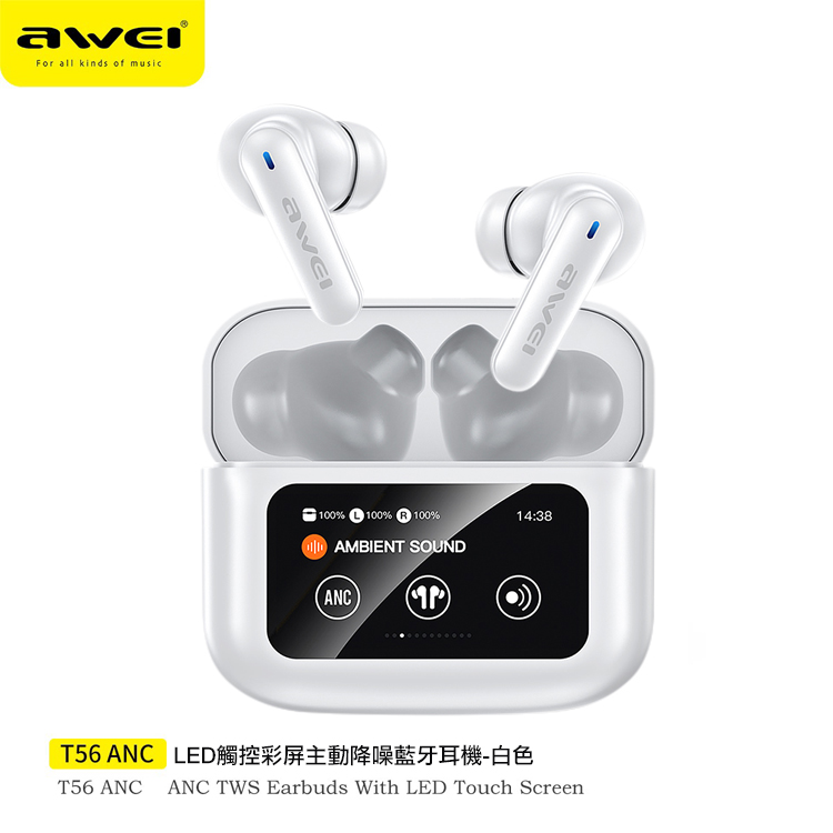 AWEI用維T56 ANC降噪觸控彩屏主動降噪藍牙耳機-白