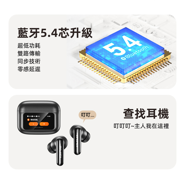 採用最新的藍牙5.4技術,AWEI T56 能夠提供更穩定的連接,超低功耗和雙路傳輸功能,確保音頻同步傳輸時的零延遲。這使得耳機非常適合觀看視頻或玩遊戲時使用,保證了最佳的無線聽覺體驗。