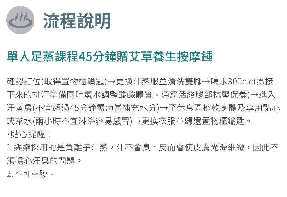 台北信義【樂樂汗蒸幕】單人足蒸課程45分鐘贈艾草養生按摩錘(平假日) (25M0)