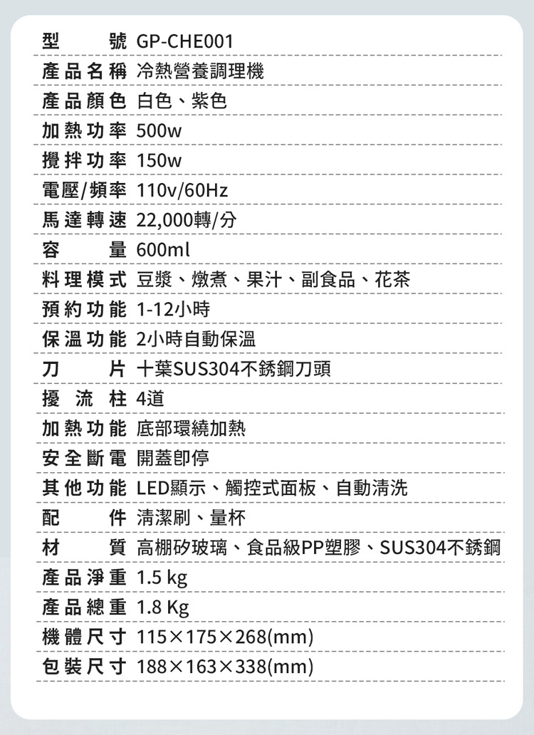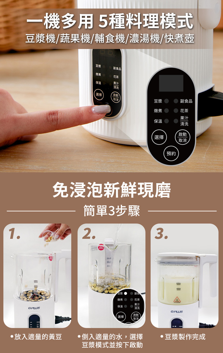 五種模式豆漿/副食品/燉煮/花茶/果汁