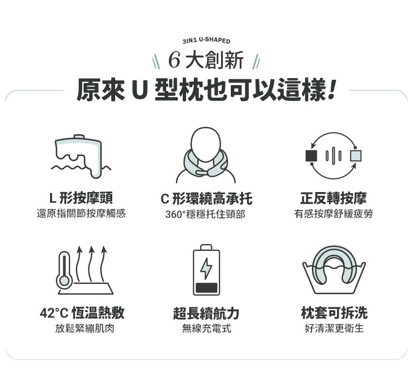 【DOZO嚴選】3ZeBra-溫揉頸|肩頸U型按摩枕