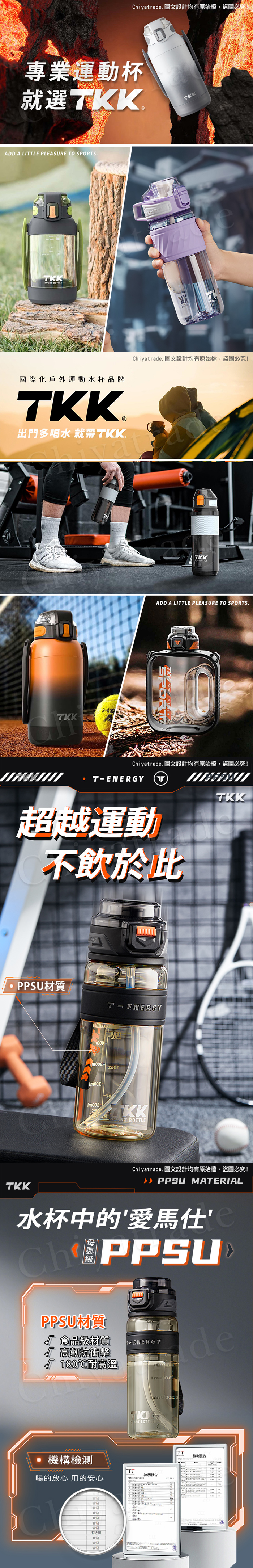 【TKK】鉑金級PPSU 超越運動隨身杯 手提式 兩用 運動水壺620ML(附提帶)-霜藍灰