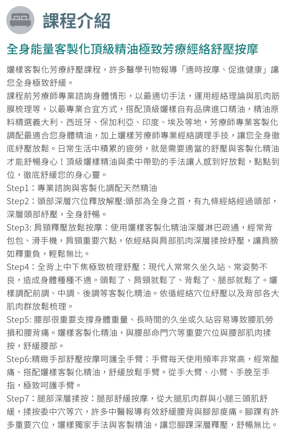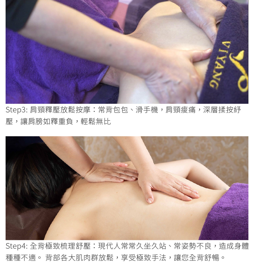 台北/台中【VIYANG孋樣】全身能量客製化頂級精油極致芳療經絡舒壓按摩券 (MO)