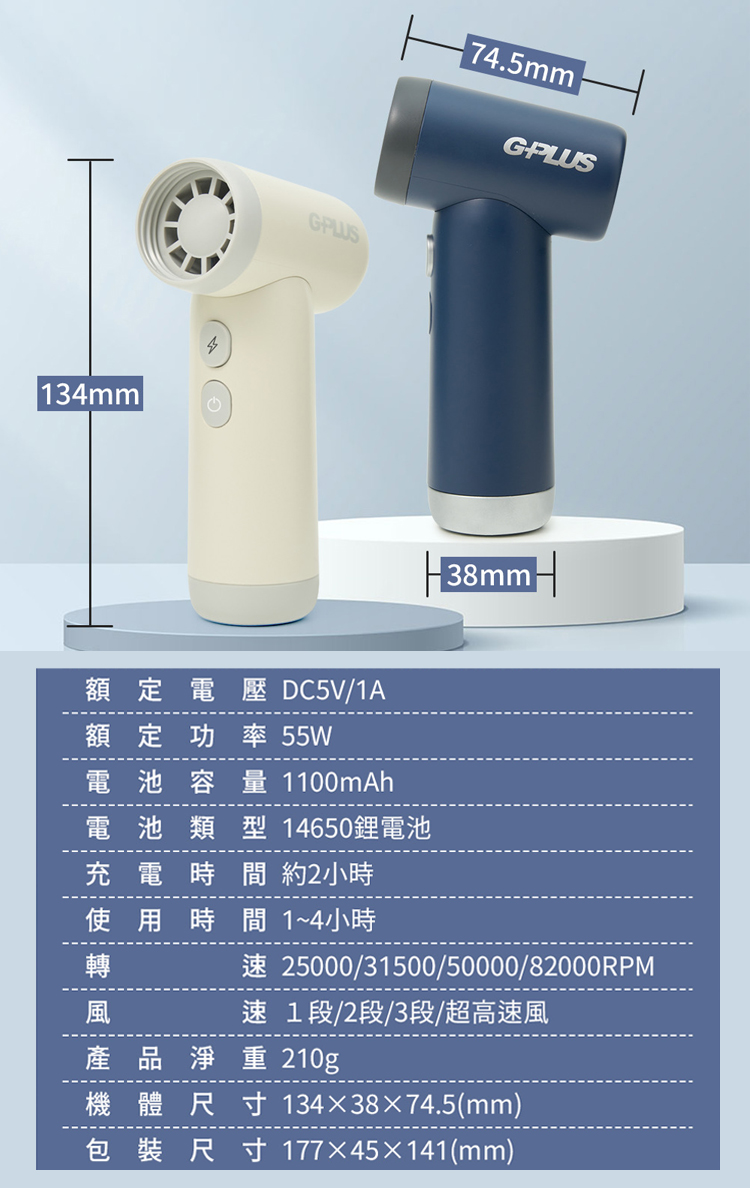 GPLUS 渦輪式強力吹風扇 GP-SG001S 噴槍級氣壓扇 露營生火電腦清潔扇-白