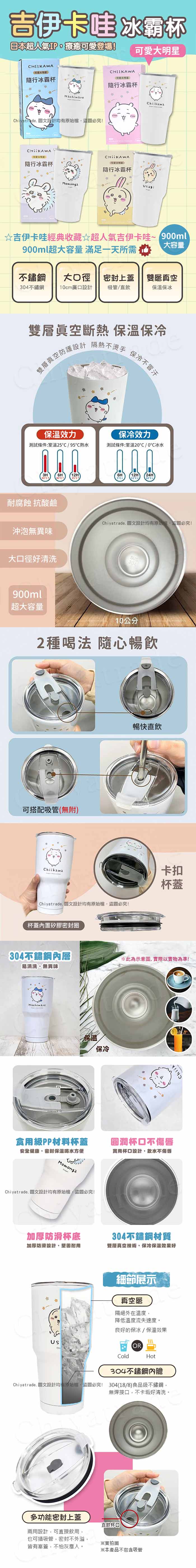 900ml超大容量,滿足一天所需,超人氣吉伊卡哇圖案冰霸杯,