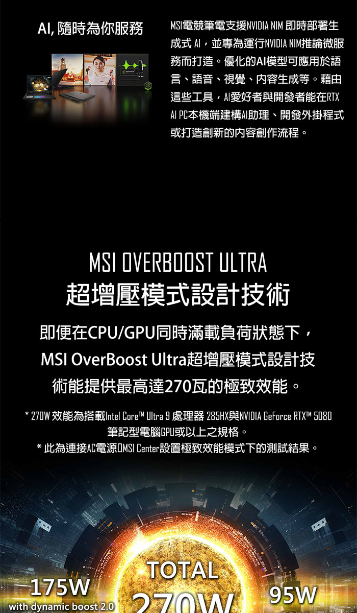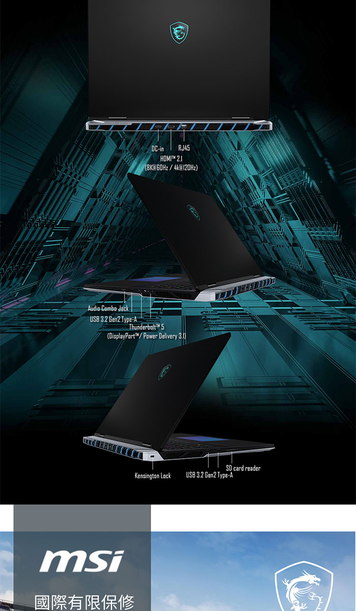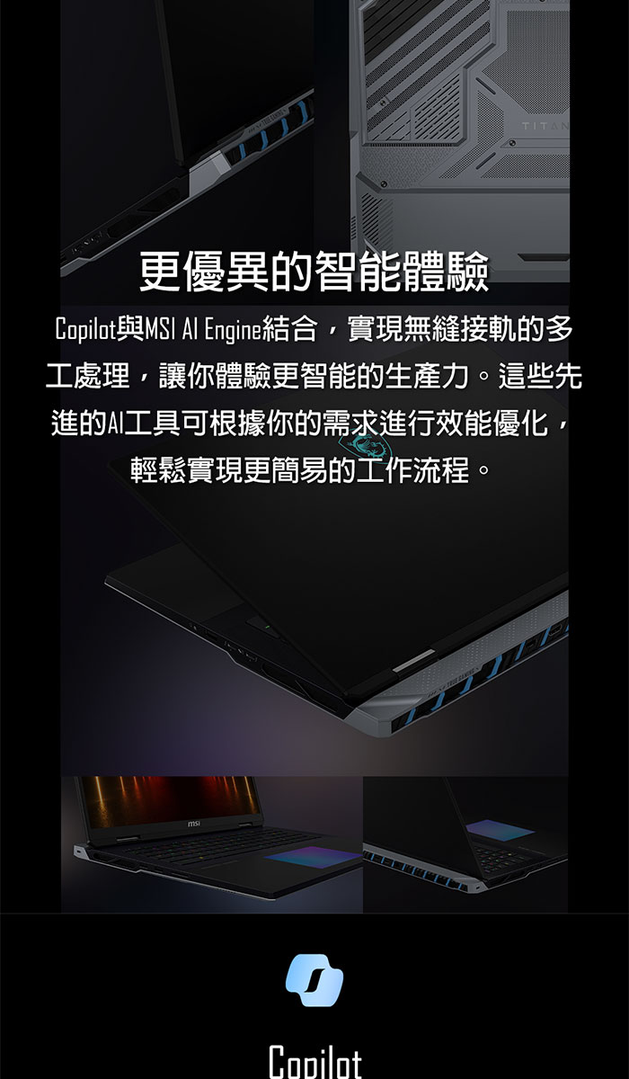 《MSI 微星》Titan 18 HX AI A2XWJG-610TW(18吋UHD+/Ultra 9 285HX/64G/6TB SSD/RTX5090)