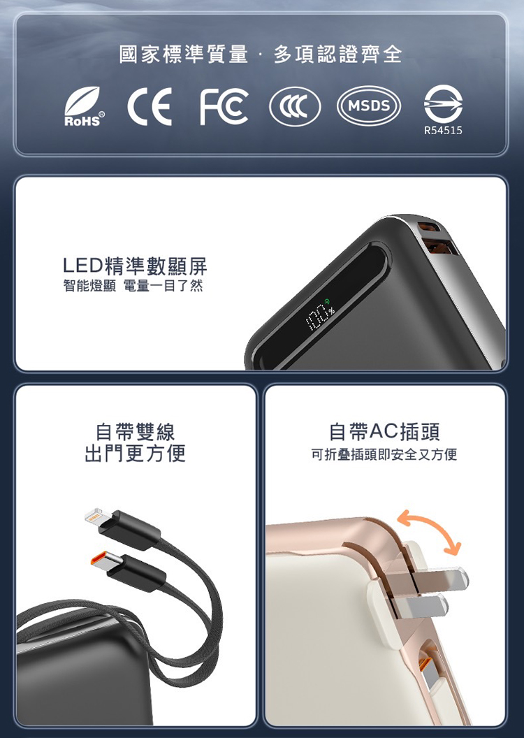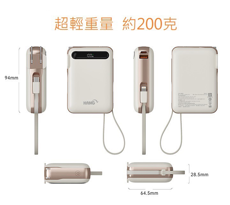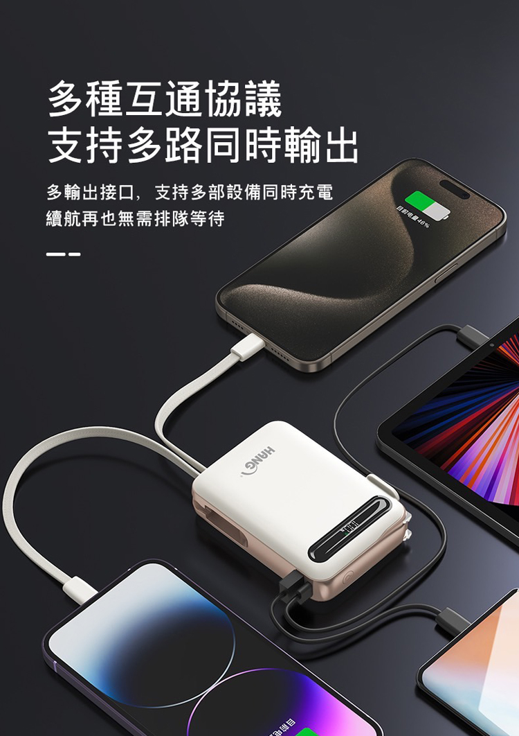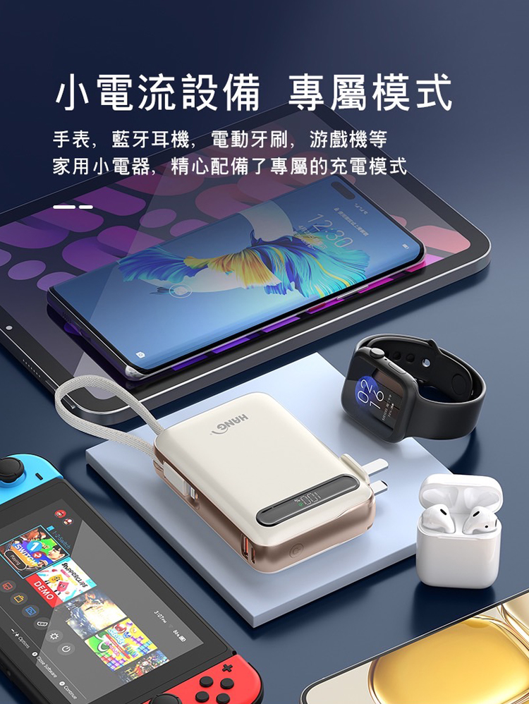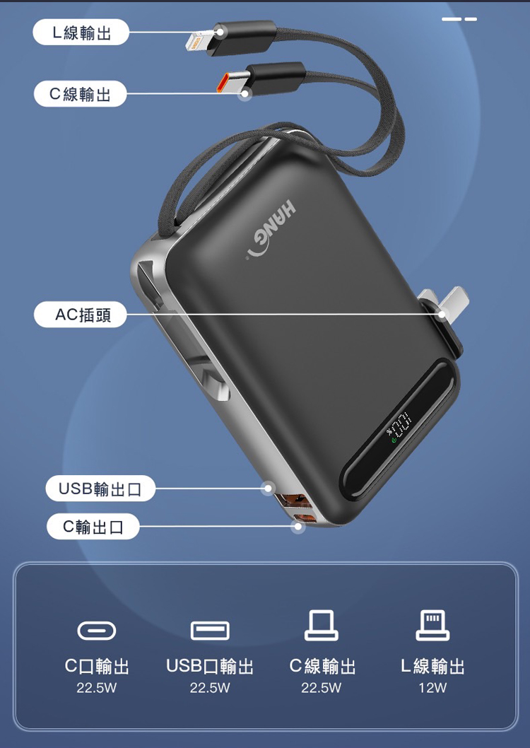 HANG AC2 自帶插頭 10000mAh 行動電源 22.5W三合一 PD QC快充-黑