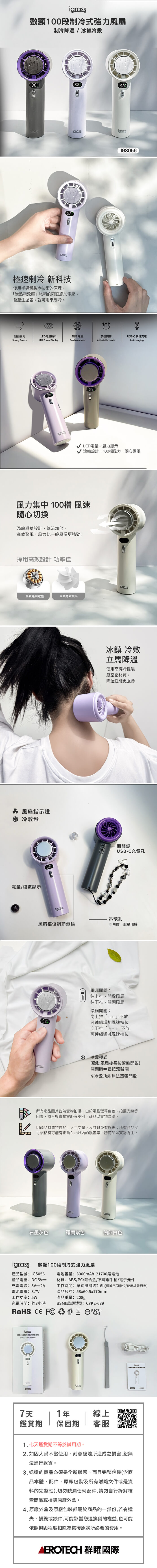 igrass 數顯100段制冷式強力風扇-鵝卵白