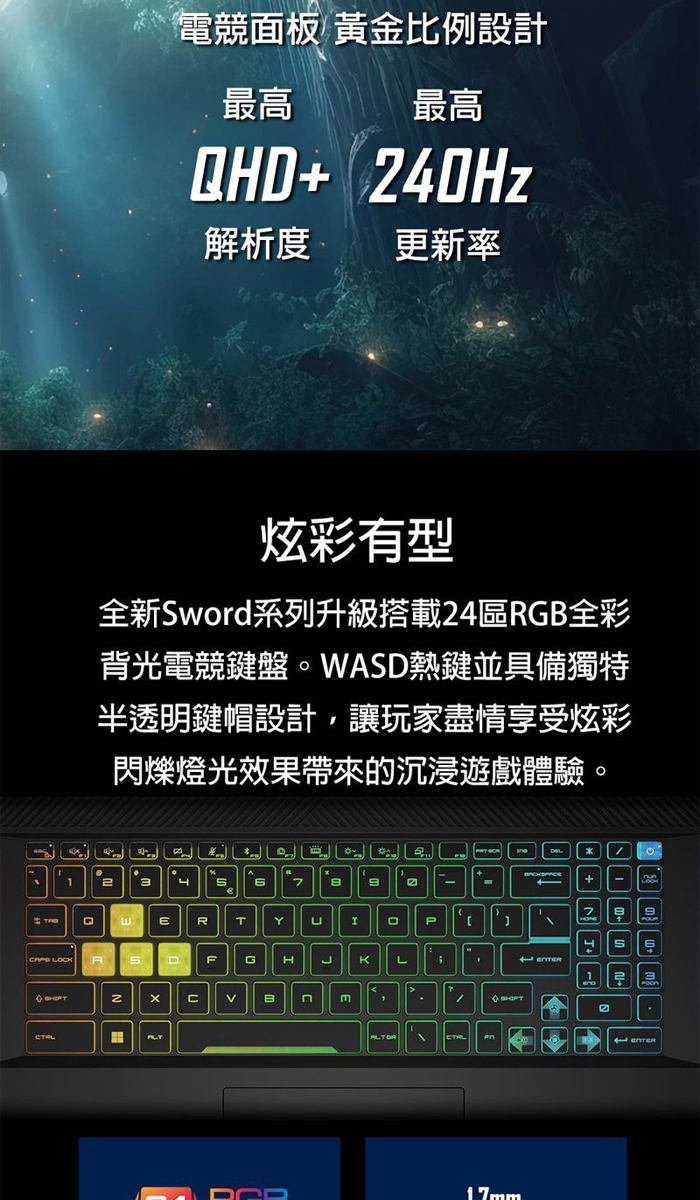 《MSI 微星》Sword 17 HX B14VEKG-283TW(17吋FHD+/i7-14700HX/16+16G/1T+512G/RTX4050/特仕版)