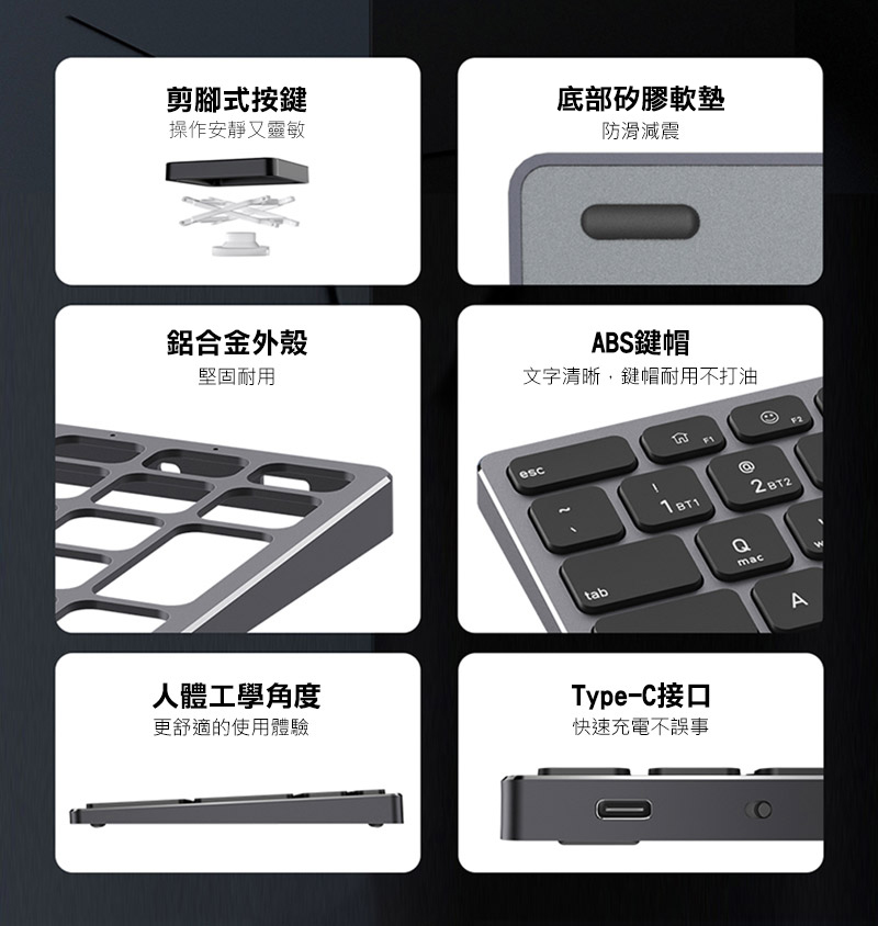 .剪刀腳結構按鍵,手感舒適,靜音無擾