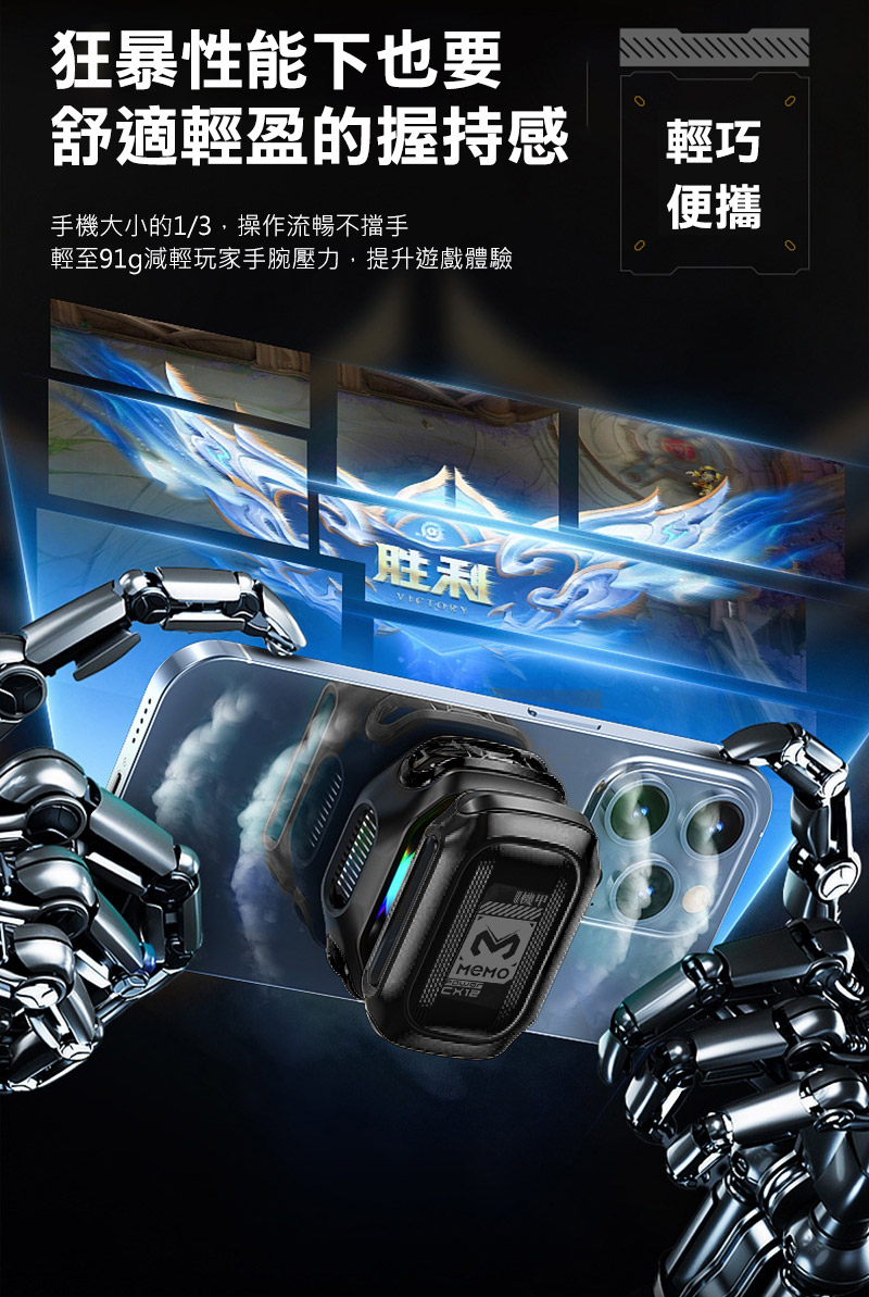 .手機的1/3大小,不擋橫向遊戲操作,輕至91g 減輕玩家手腕壓力