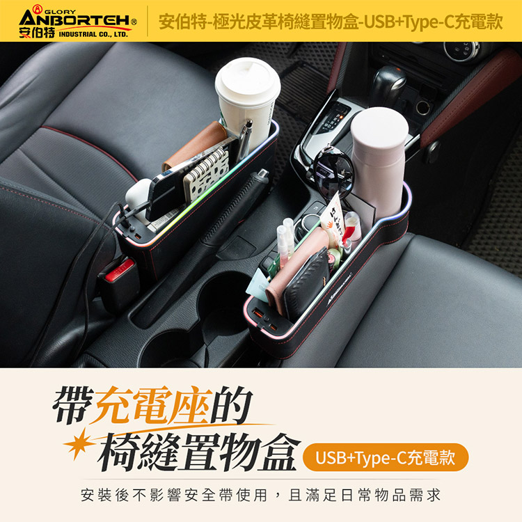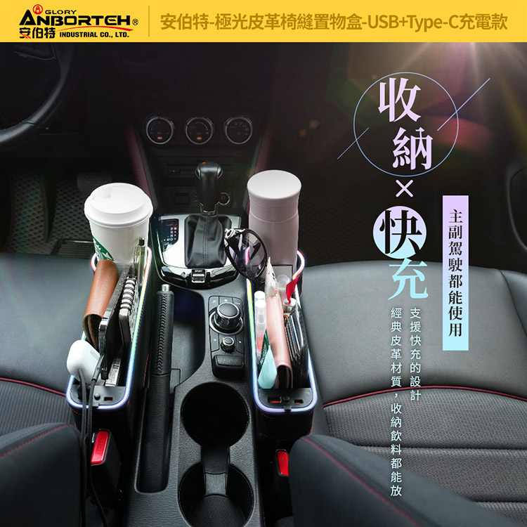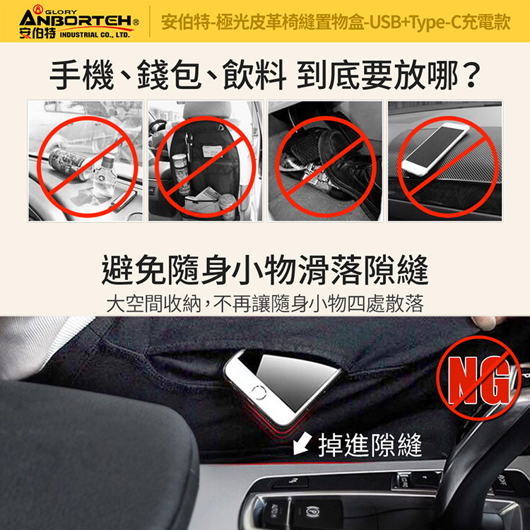【安伯特】極光皮革椅縫置物盒-USB+Type-C充電款-副駕 (汽車座椅置物盒 椅縫置物盒 車用收納)