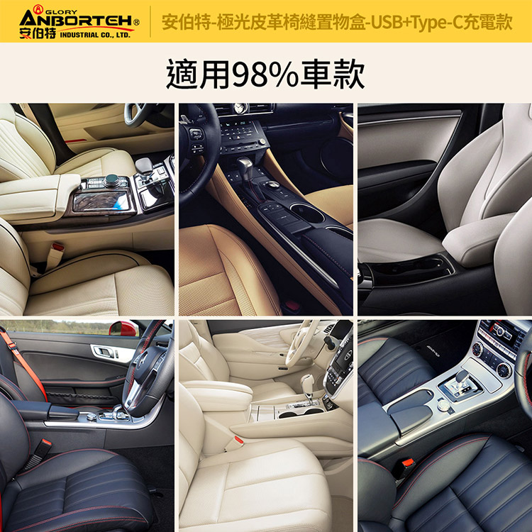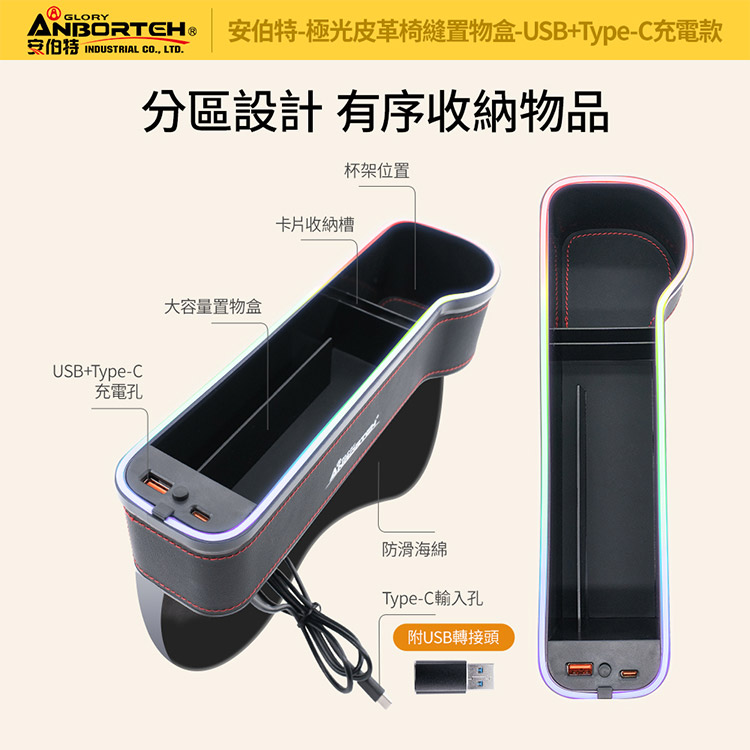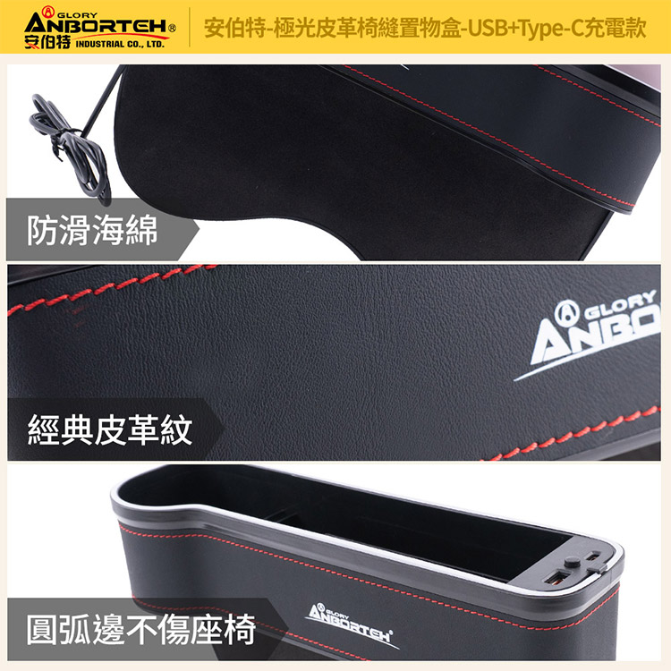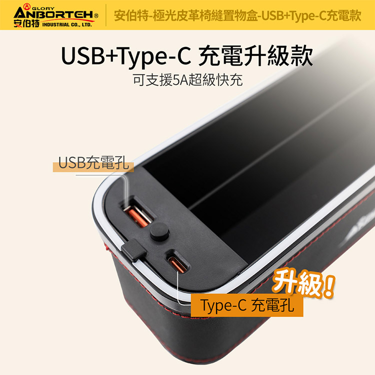 【安伯特】極光皮革椅縫置物盒-USB+Type-C充電款