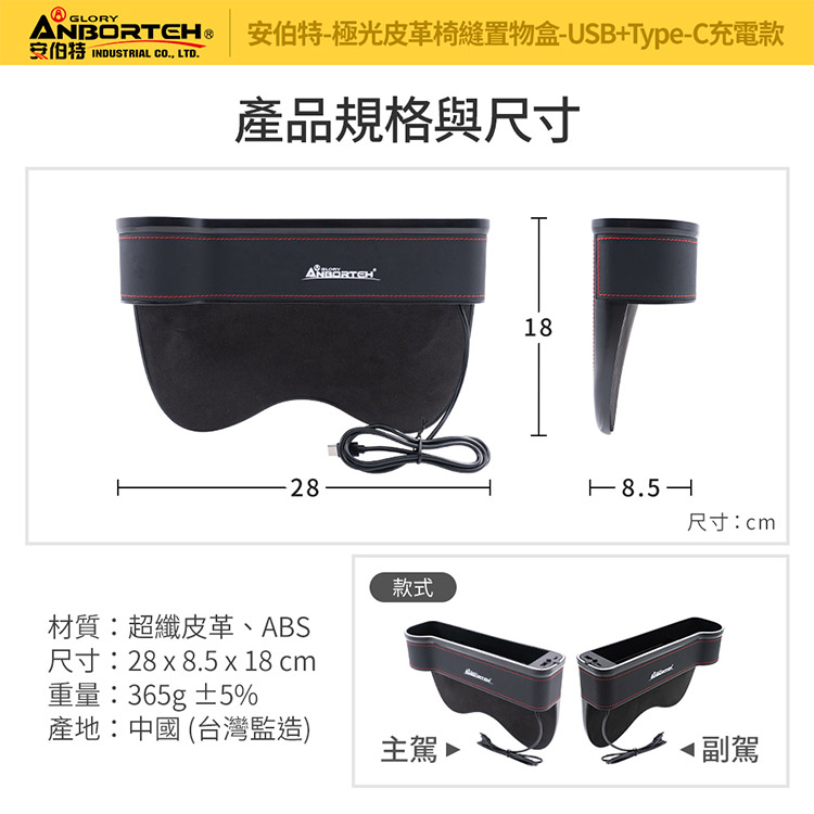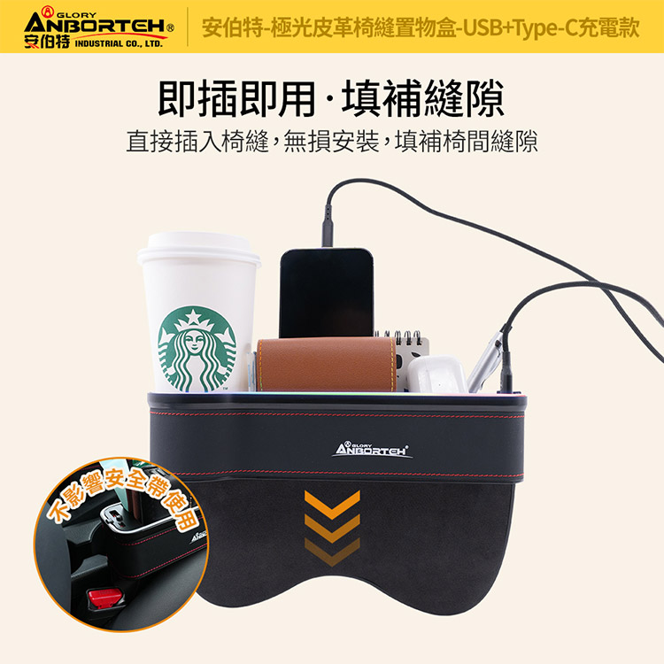 【安伯特】極光皮革椅縫置物盒-USB+Type-C充電款-主駕 (汽車座椅置物盒 椅縫置物盒 車用收納)