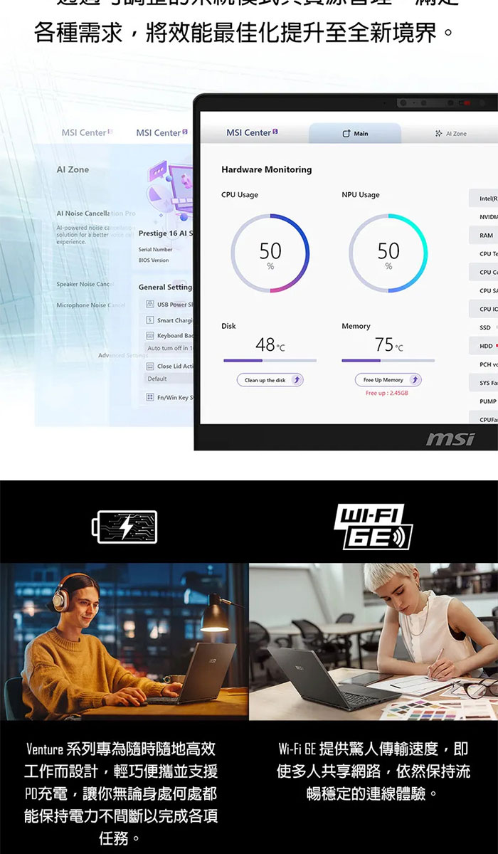 《MSI 微星》Venture A14 AI+ A3HMG-016TW(14吋2.8K/Ryzen AI 5 340/16G+16G/1TB SSD/特仕版)