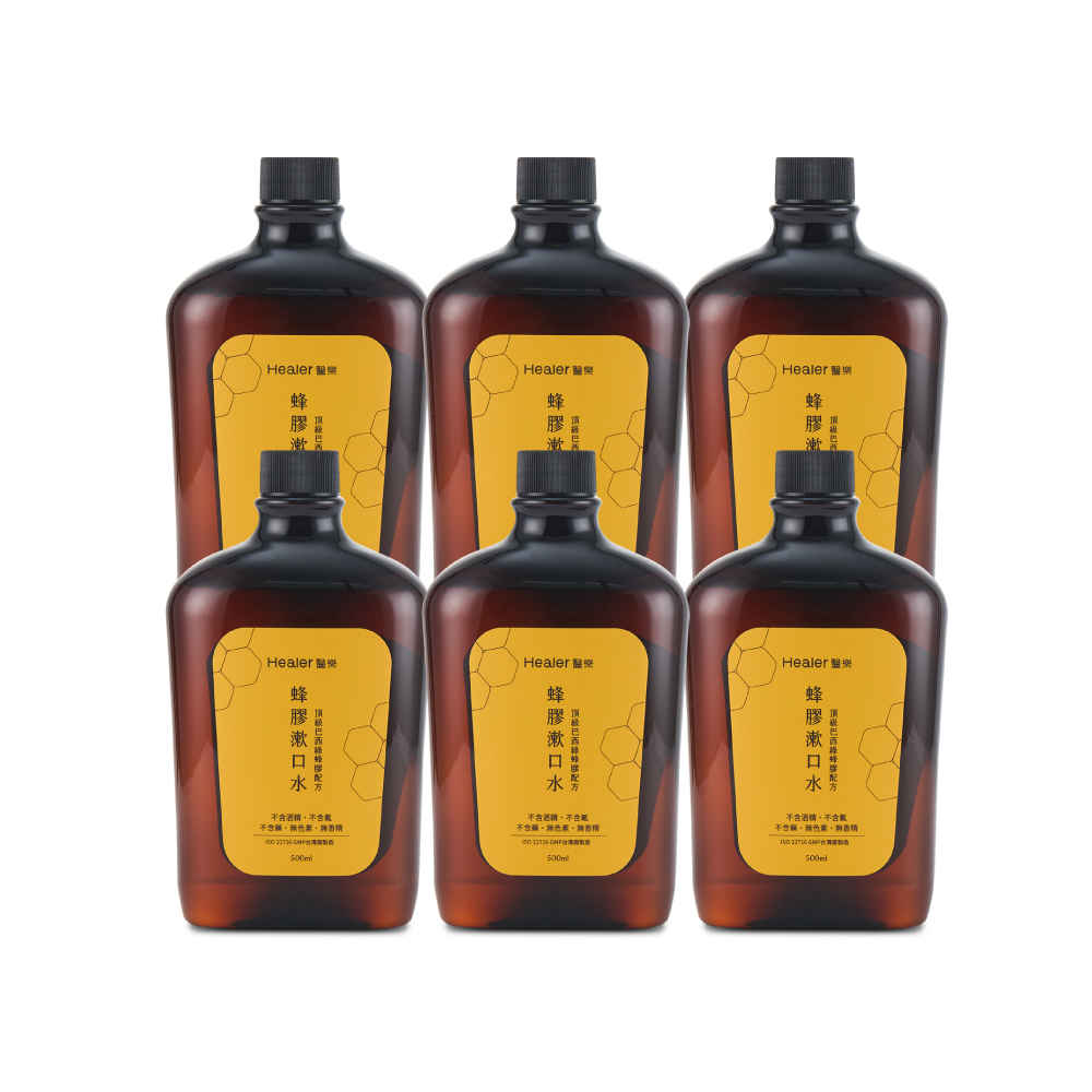 Healer醫樂頂級巴西綠蜂膠漱口水500ml-6瓶(無酒精/無香精/無色素)