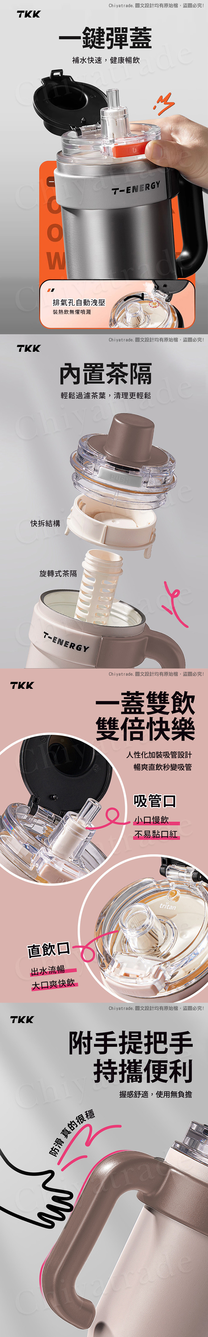 雙層真空隔熱設計,可讓飲料長效保溫保冷,長期鎖住溫度。