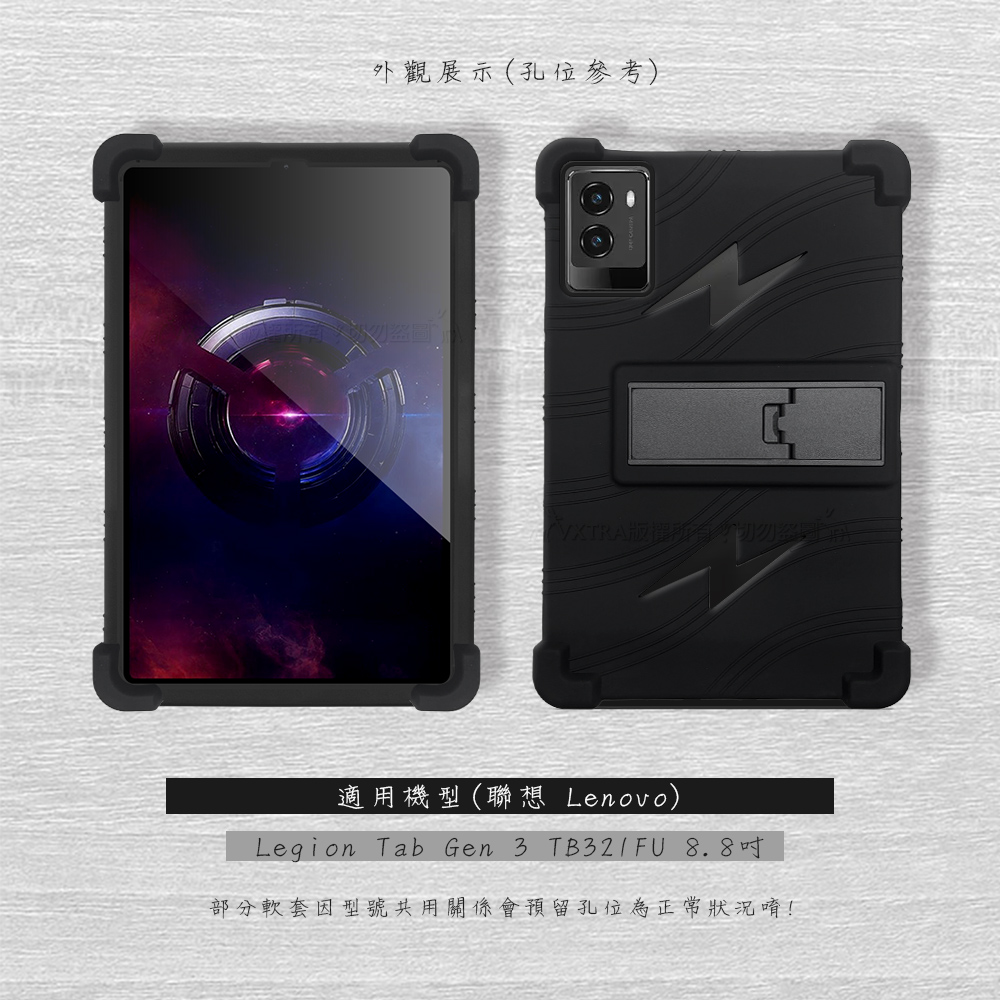 VXTRA 聯想 Lenovo Legion Tab Gen 3 TB321FU 8.8吋 全包覆矽膠防摔支架軟套 保護套(黑)