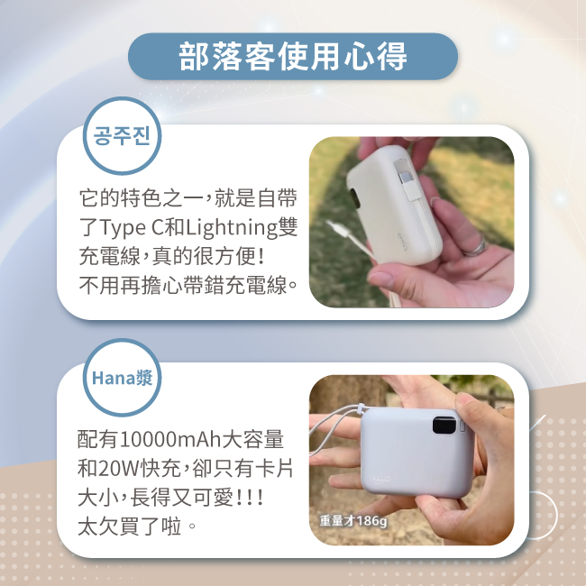 .自帶Type C+Lightning雙充電線,小巧好攜帶,同時充電三個設備