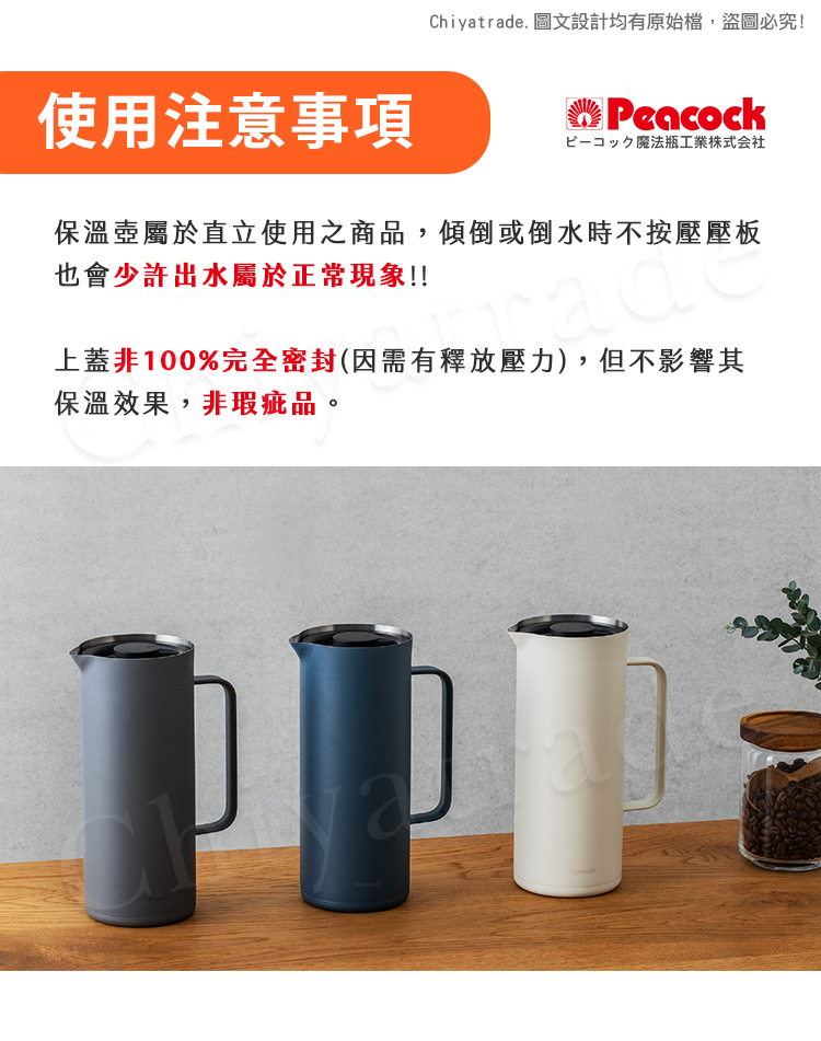 ※本壺請勿傾倒放置,若傾倒會些微滲漏為正常狀況,為避免壓力造成無法開啟,本身設計如此為正常現象非瑕疵。