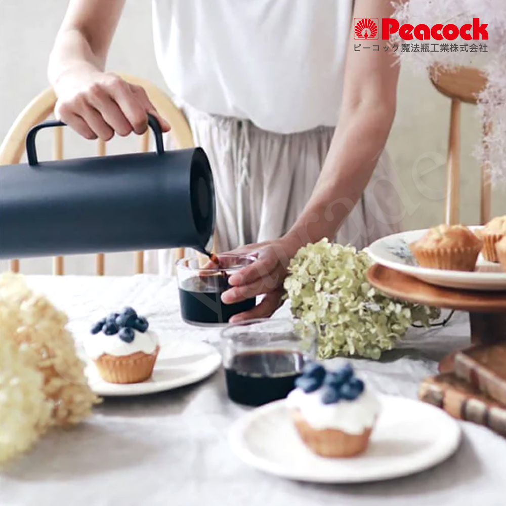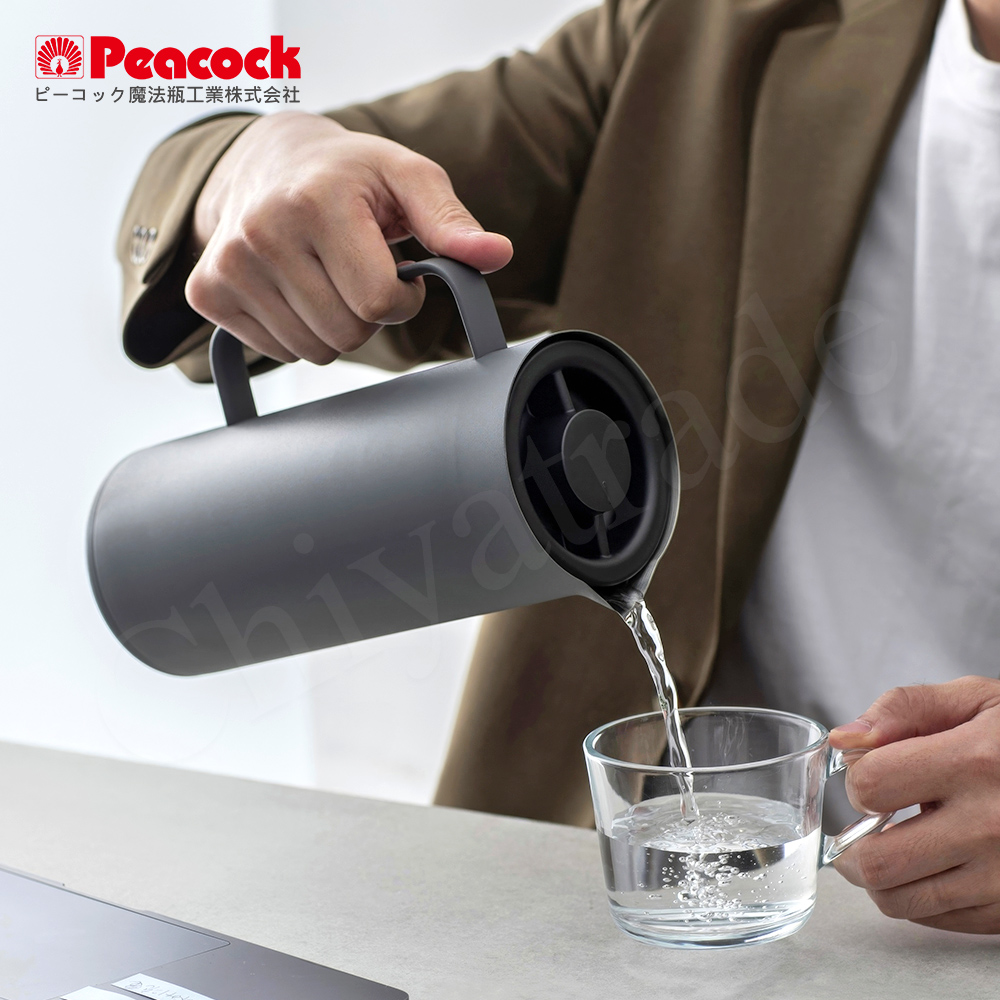 【日本孔雀Peacock】日本限定 Living Pot 時尚保溫壺 不鏽鋼水壺 桌上壺 1.0L-水泥灰