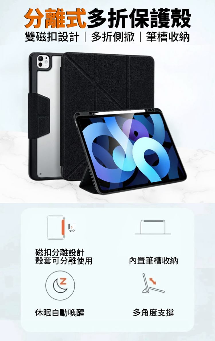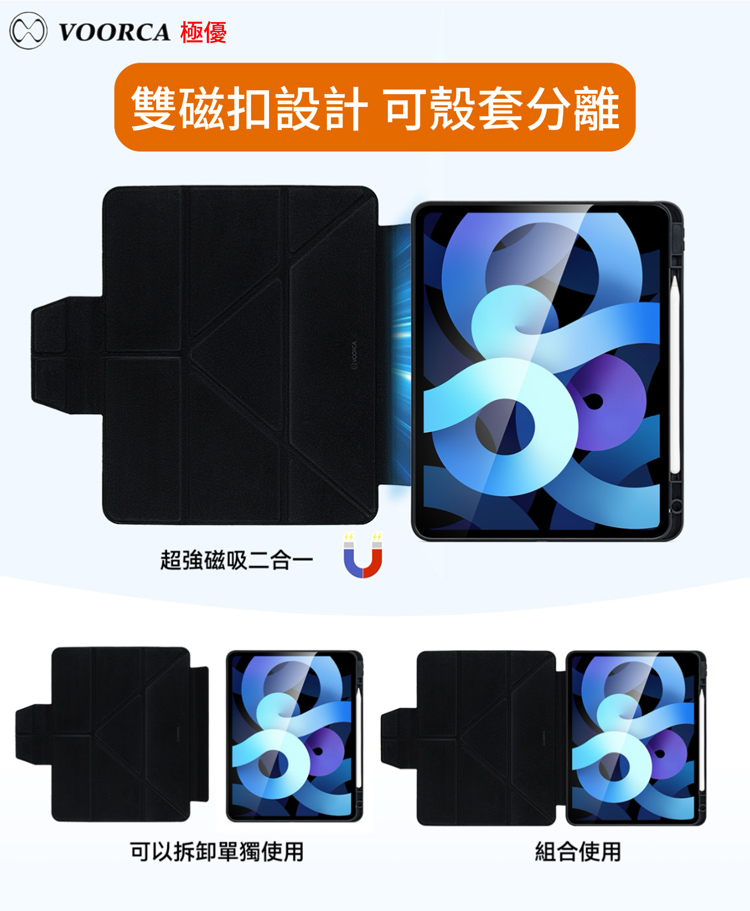 多折側掀,可磁吸分離使用