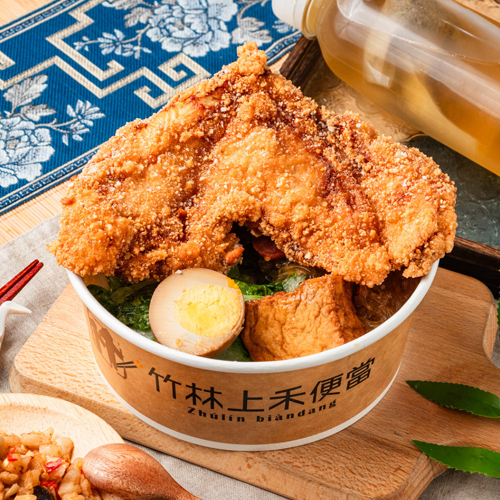 台北【竹林上禾便當】大雞排套餐兌換券_香酥大雞排飯+貢丸湯+冷泡茶飲(MO)