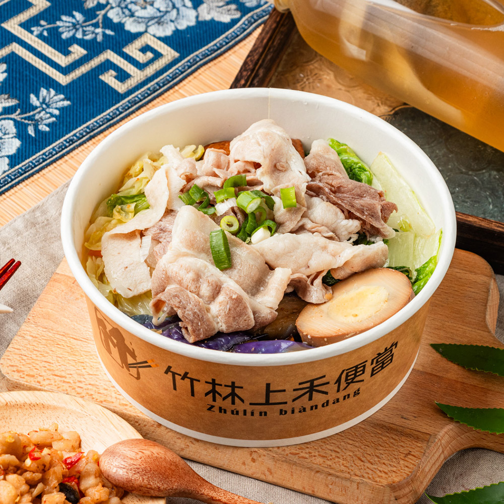 台北【竹林上禾便當】蒜泥白肉套餐兌換券_蒜泥白肉飯+貢丸湯+冷泡茶飲(MO)