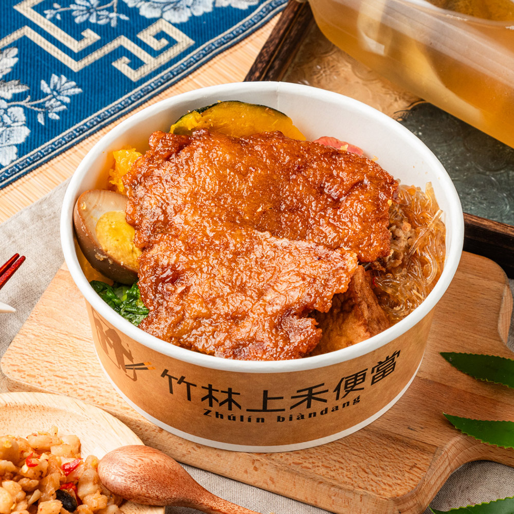 台北【竹林上禾便當】滷香排骨套餐兌換券_滷香排骨飯+貢丸湯+冷泡茶飲(MO)