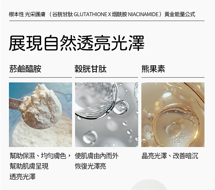 高效植萃,幫助提亮膚色,均勻膚色,讓肌膚透出光感亮澤。