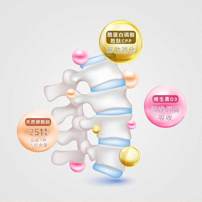 天然卵殼鈣251毫克,超過1杯牛奶含量