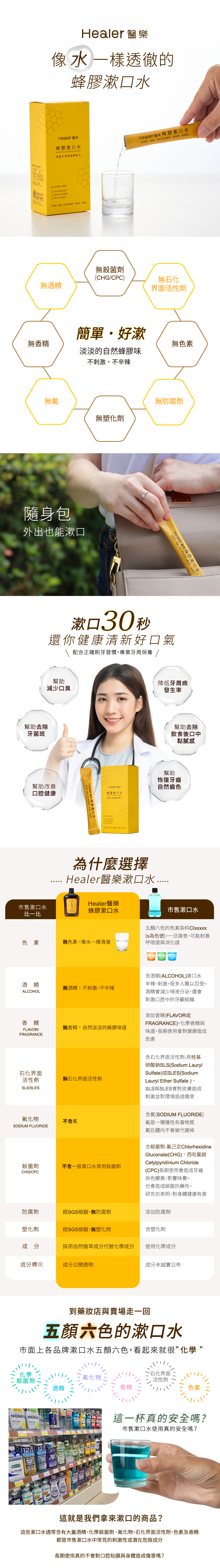 如果您使用過其他漱口水,覺得好辣、有很濃得化學味,一定不能錯過Healer醫樂蜂膠漱口水!