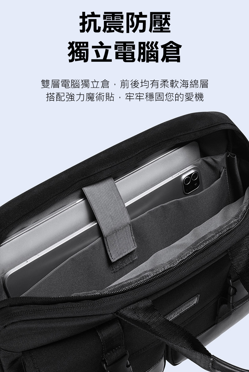 .雙層獨立電腦層,搭配強力魔鬼氈,牢牢穩固您的愛機