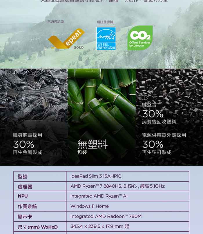 《Lenovo 聯想》IdeaPad Slim 3 83KA004DTW(15.3吋WUXGA/R7 8840HS/8G/512G+512G/特仕版)