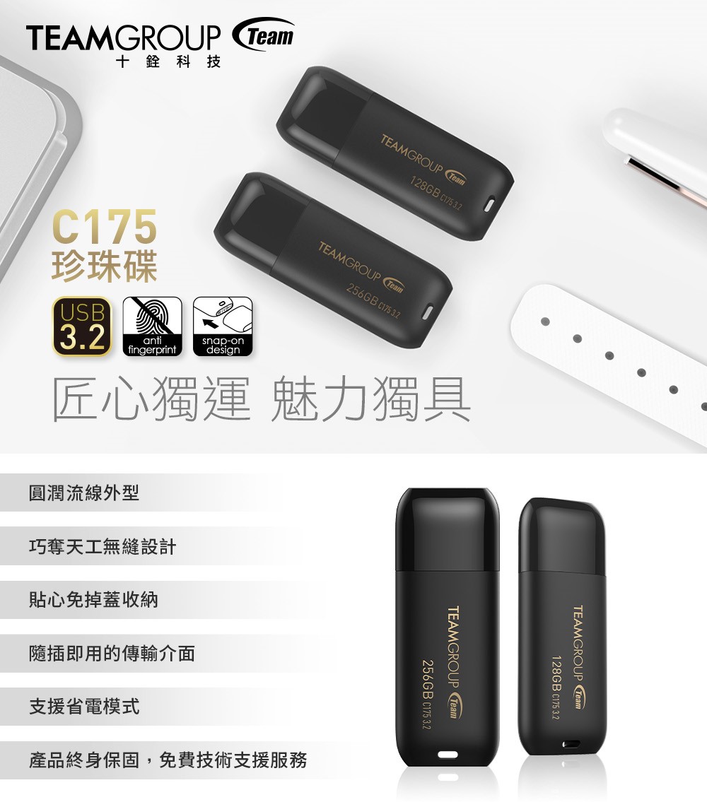 Team 十銓 C175 512GB USB3.2 珍珠隨身碟-黑