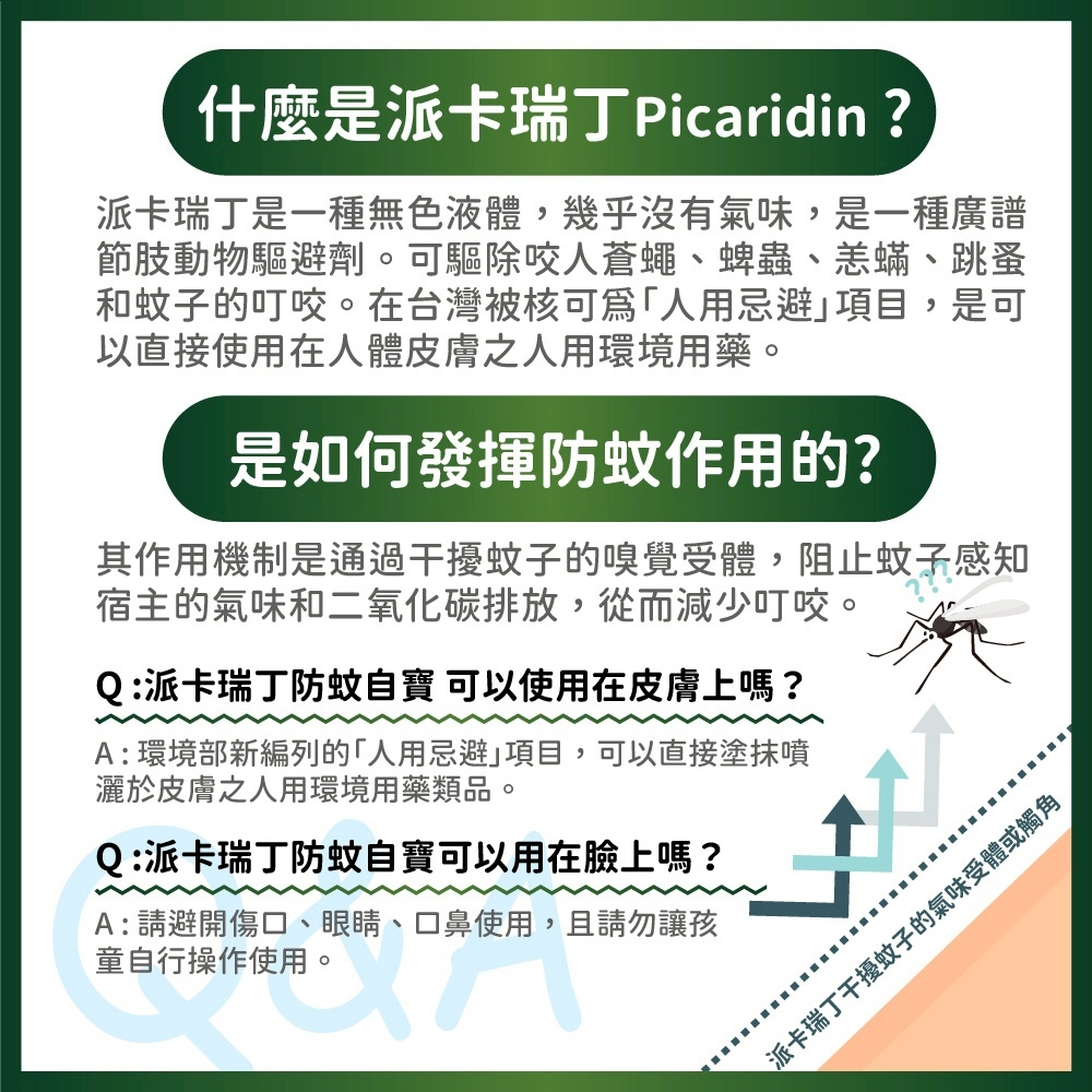 若不慎接觸眼睛、嘴巴或皮膚出現敏感症狀,請⽴即⽤⼤量清⽔沖洗。如仍感不適,請持本品標⽰就醫,並告知產品內含⼄醇及派卡瑞丁。