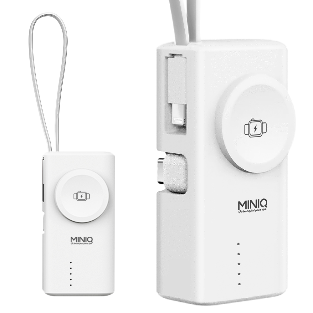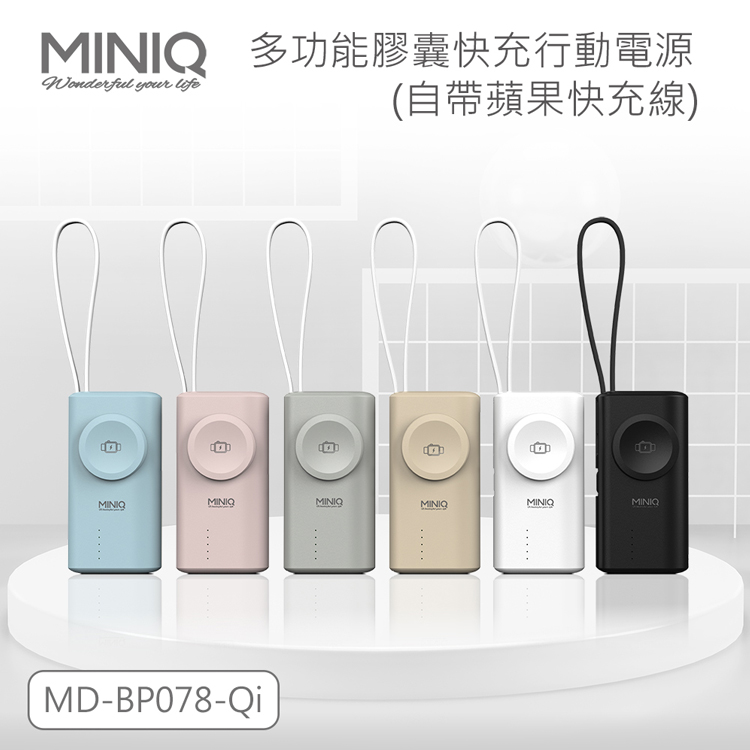 MiniQ MD-BP078-Qi 4合1迷你行動電源 自帶Lightning充電線+摺疊Type-C插頭(台灣製)-天使白