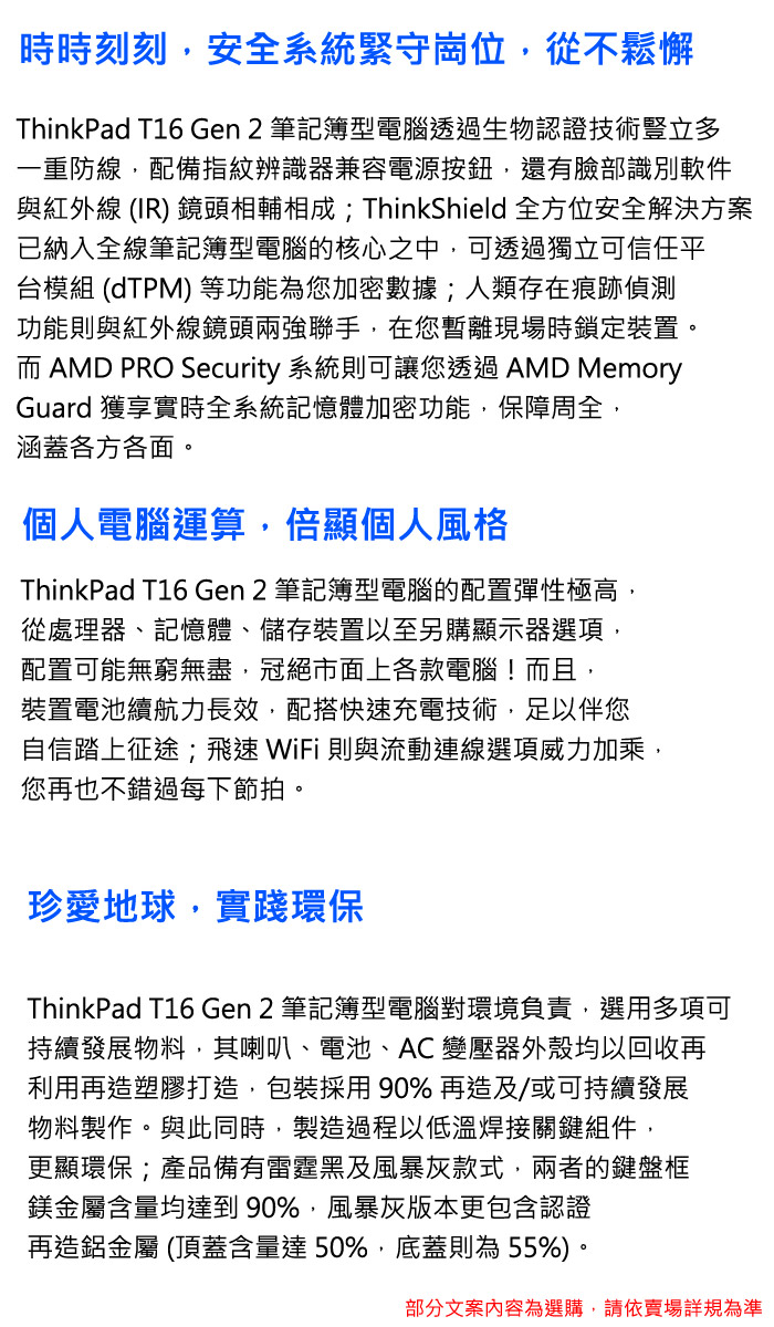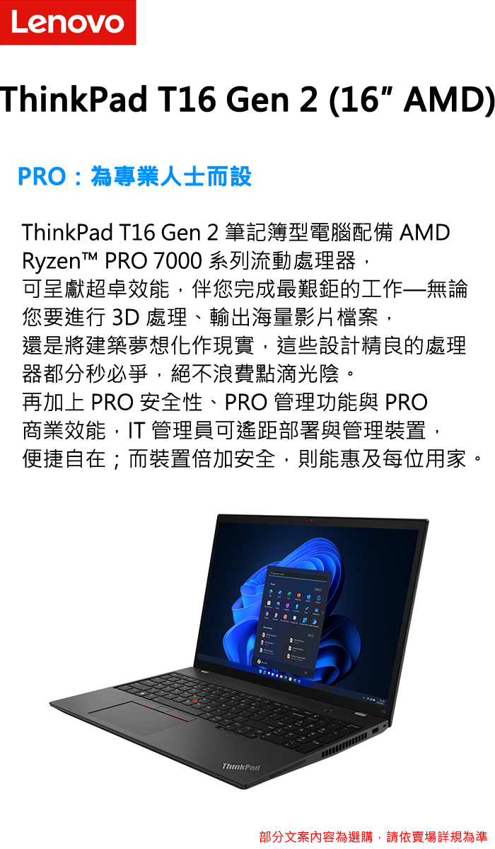 《Lenovo 聯想》ThinkPad T16 Gen 2(16吋WUXGA/Ryzen 7 PRO 7840U/32G/512G SSD/Win11P/二年保