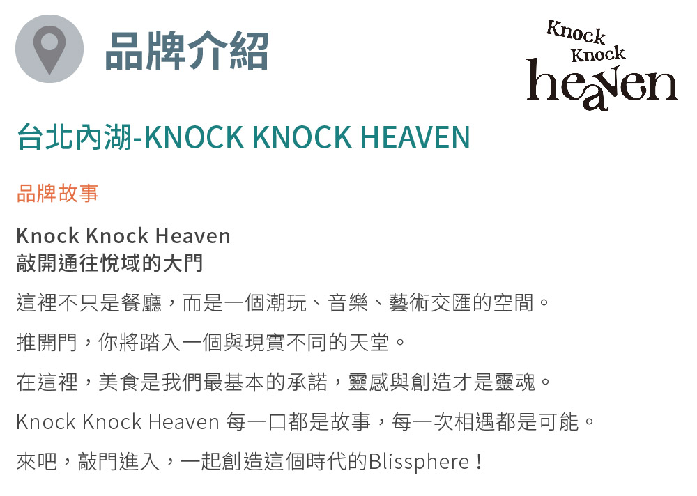 台北內湖【Knock Knock Heaven】$1000現金抵用券(MO)