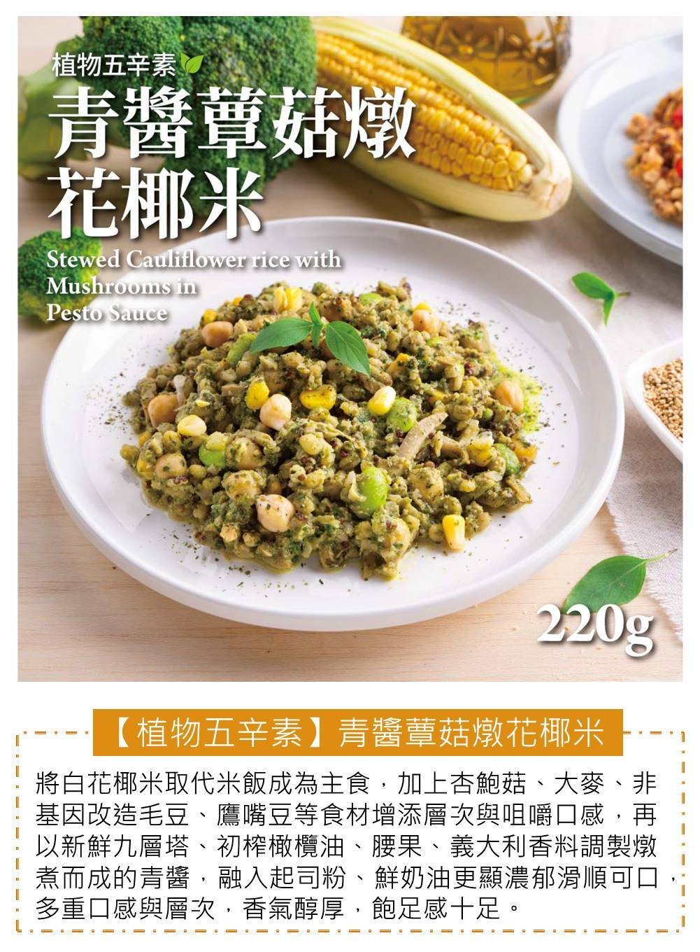 青醬蕈菇燉花椰米220G-植物五辛素3包