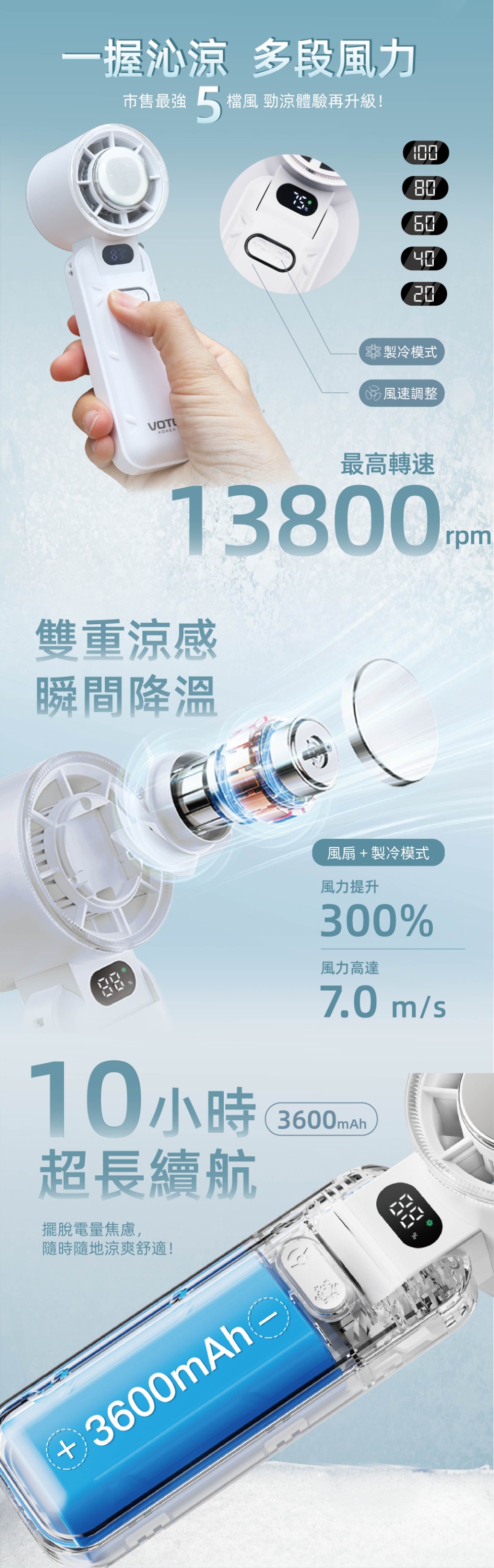 【韓國VOTO】製冷手持風扇-奶霧色