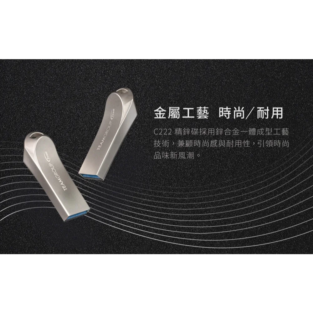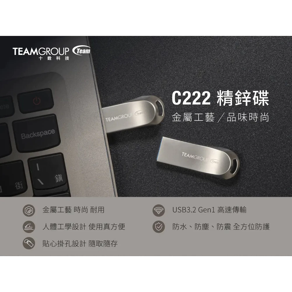 TEAM 十銓 C222 64GB USB3.2精鋅碟 金屬隨身碟 (防水+防塵+終身保固)