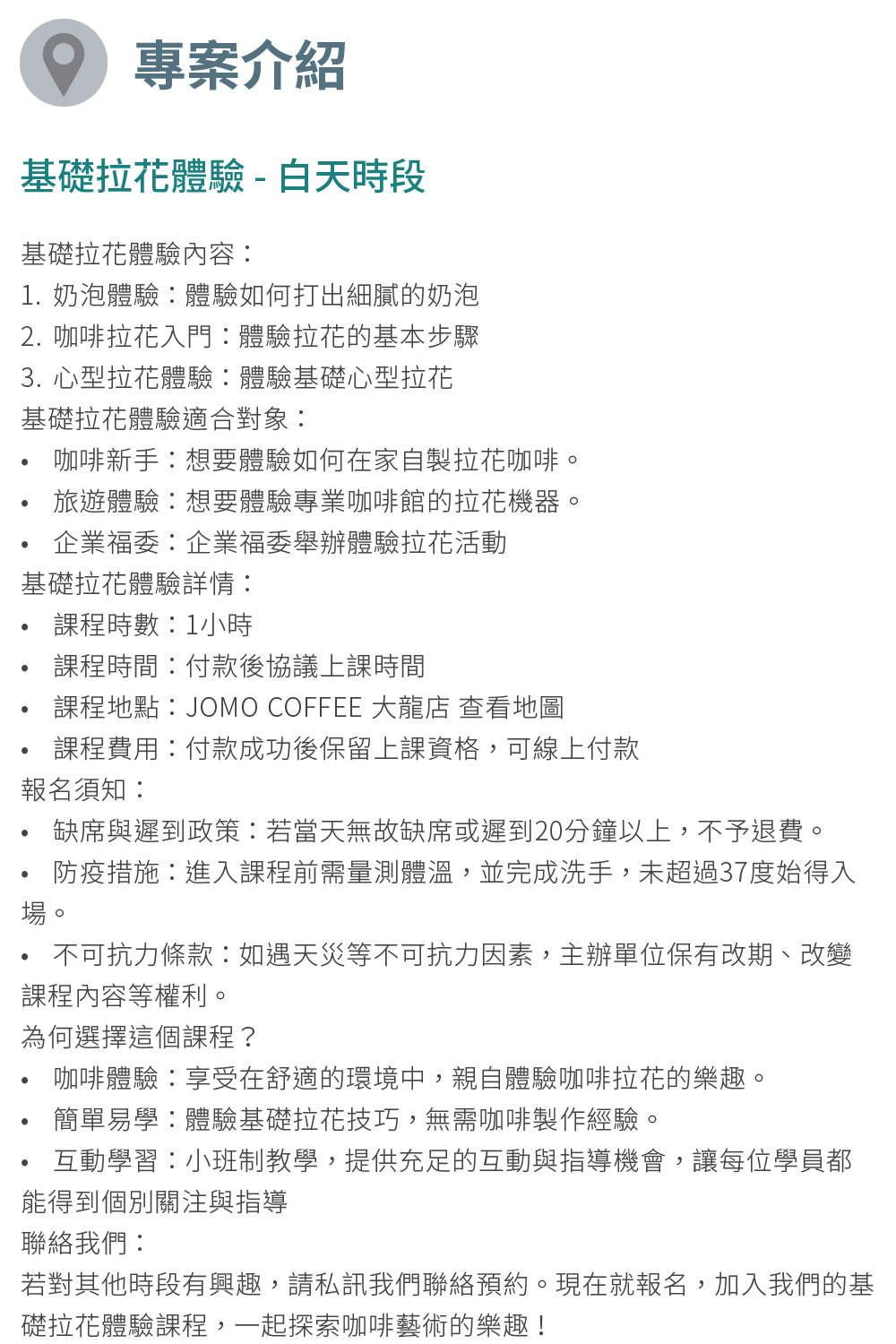 台北市【JOMO COFFEE】 基礎拉花體驗券(白天場) (MO)
