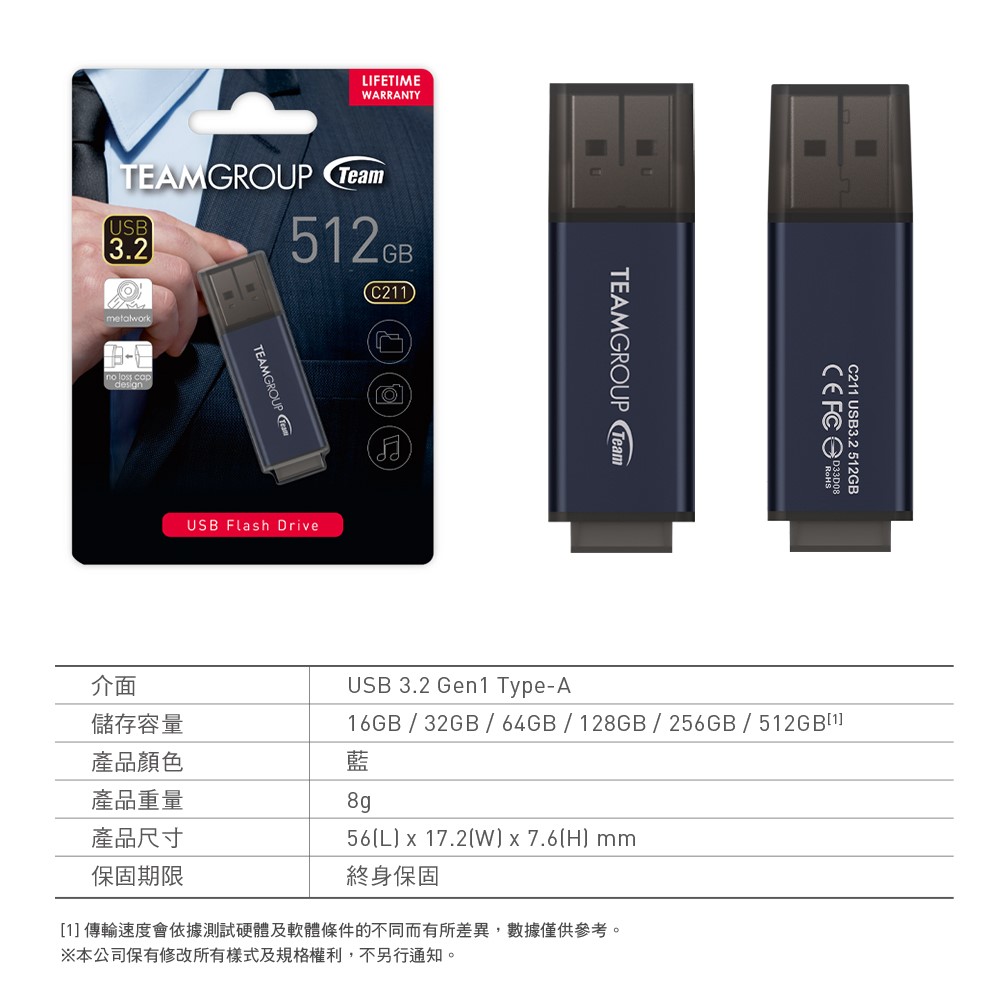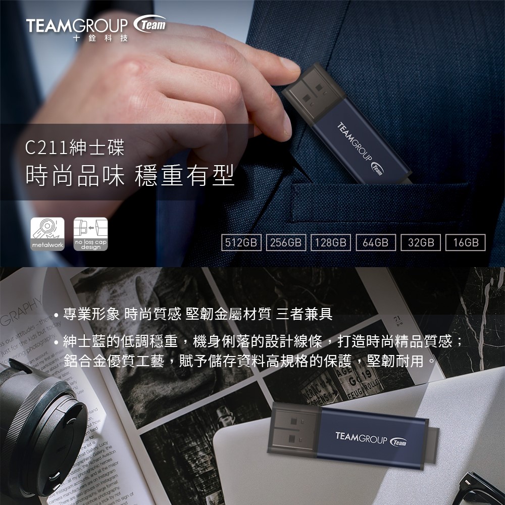 TEAM 十銓科技 C211 512GB 紳士碟 USB 3.2 隨身碟