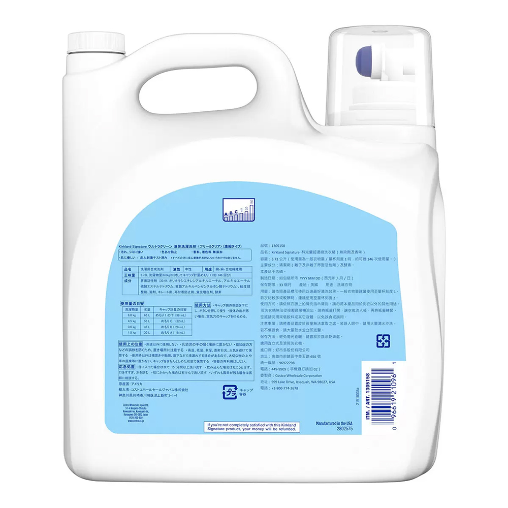 Kirkland Signature 科克蘭 超濃縮無香精洗衣精5.73公升/瓶