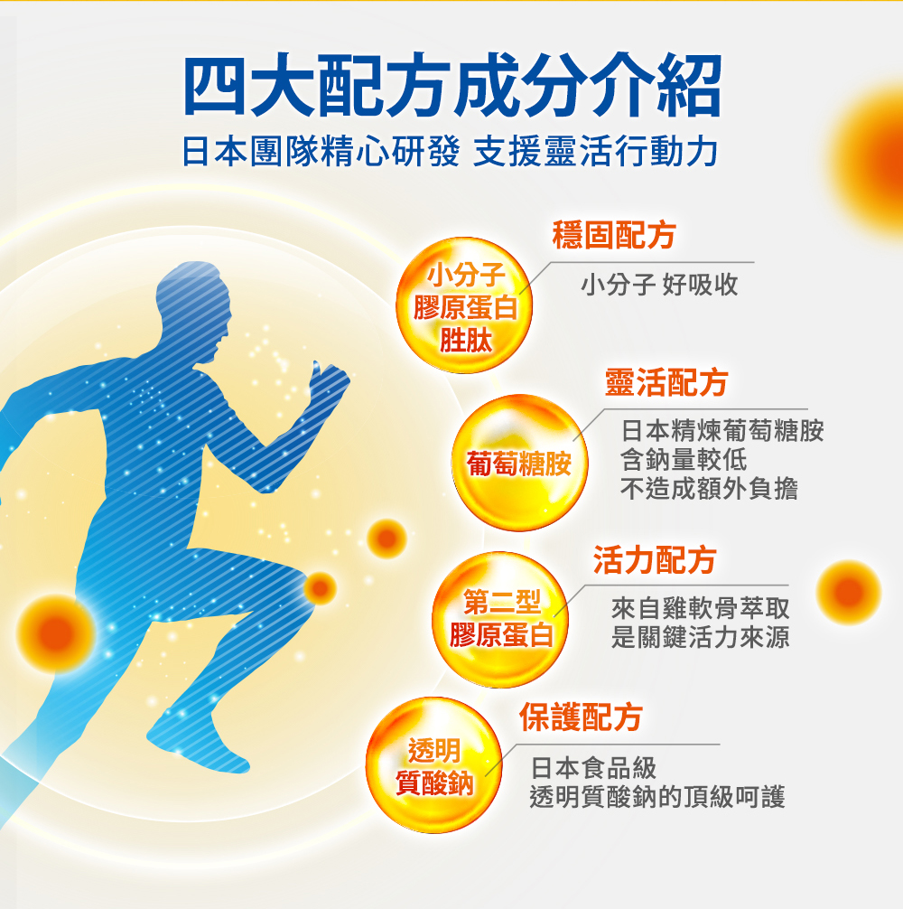 ★靈活配方:日本精煉葡萄糖胺,含鈉量較低