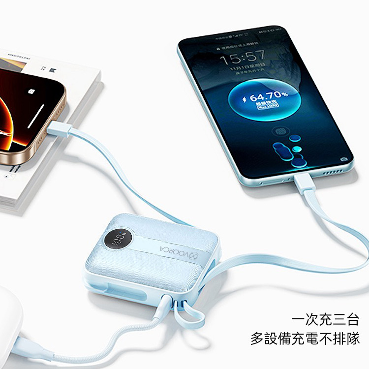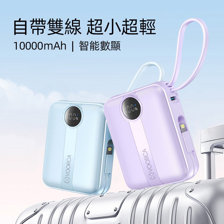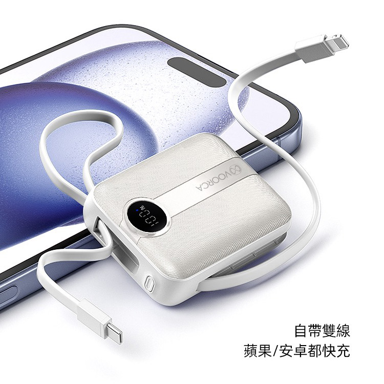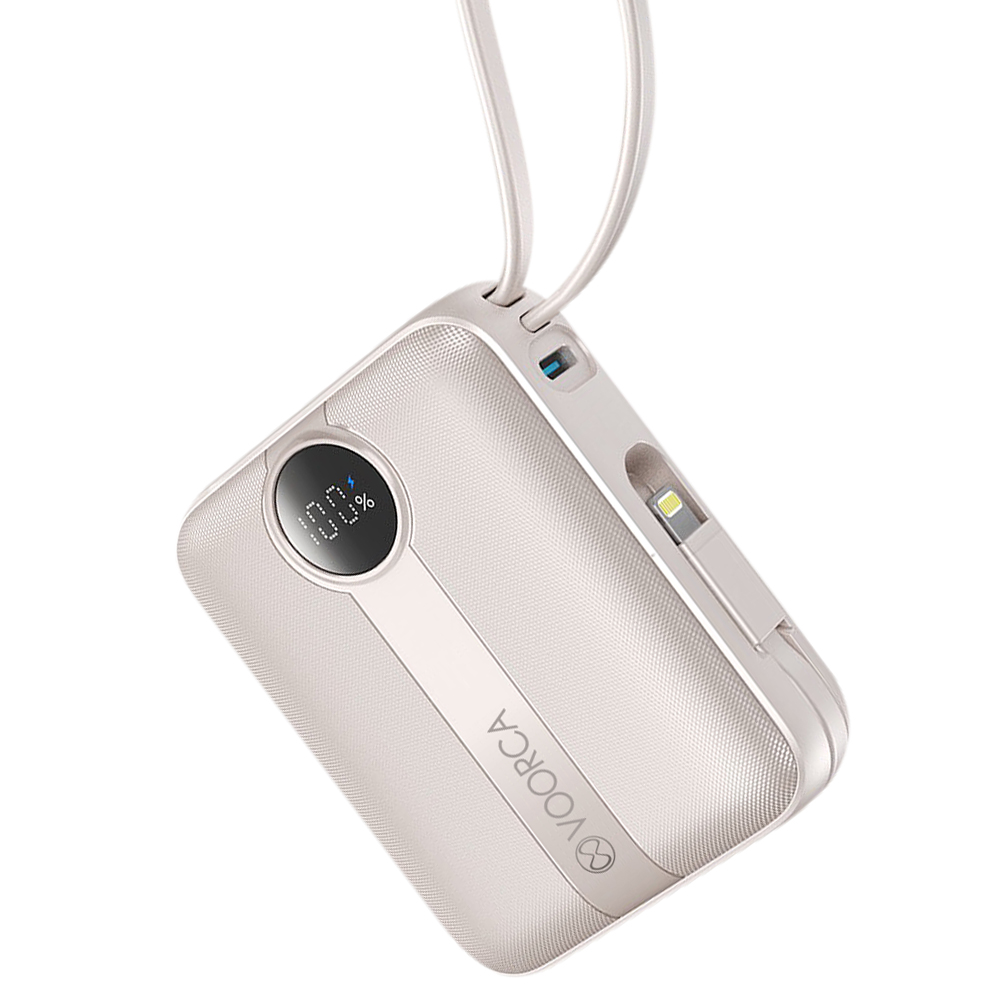 VOORCA D916 10000mAh 行動電源 22.5W自帶Type-C/Lightning線 mini隨身充-奶茶