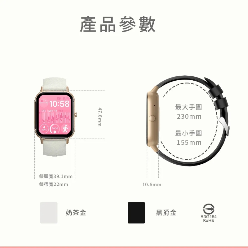 Ergotech人因 SW216 2.01吋衡動智慧腕錶-黑爵金