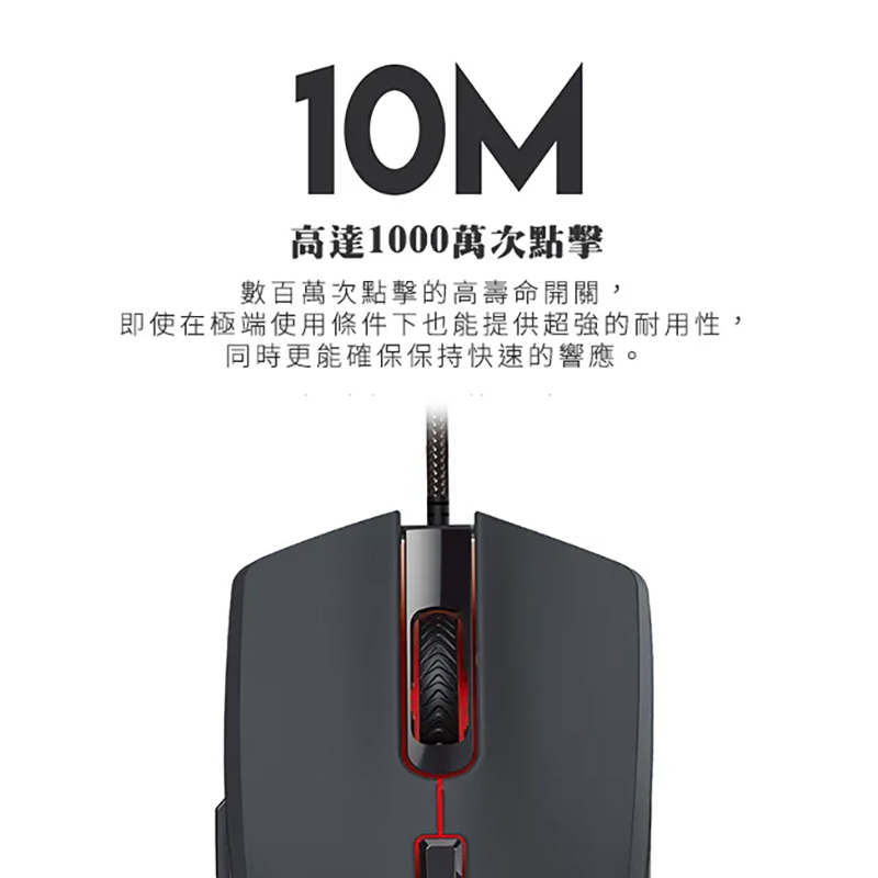 使用高達1000萬次點擊的開關設計,點擊性能優越,使用壽命超長。